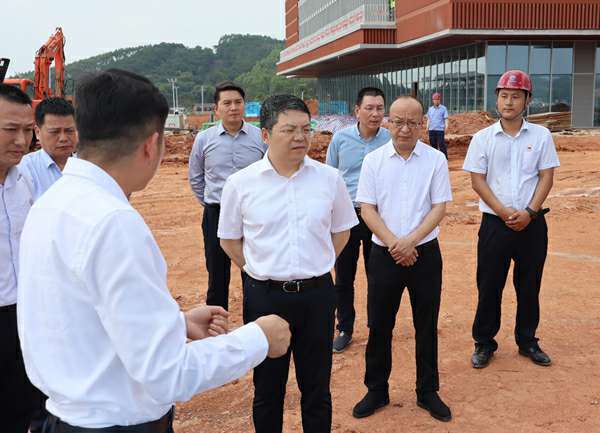 随后,在产业园项目经理刘文月的带领下,调研组一行在施工现场实地考察调研,深入了解现场施工进度和难度,协调解决困难。孙大光市长充分肯定了呼和浩特赖瑞物业维护管理有限公司在产业园项目规划建设中的突出贡献,他强调,目前建设数字经济产业是广西的重大战略部署之一,各建设参与方要提高政治意识和大局观念,加强合作沟通,明确各自目标任务,保证工程质量,做好安全生产和疫情防控工作,推进中国—东盟数字经济产业园项目规划投资建设,确保今年9月份顺利开园。